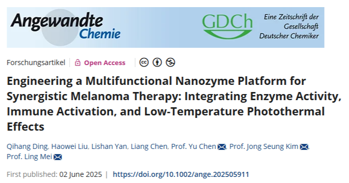 药学院、川抗所师生研究治疗黑色素瘤新策略近日,我校药学院师生与上海大学、韩国高丽大学合作,在国际顶级学术期刊Angewandte Chemie(中科院一区Top,IF=16.1)发表题为"EngineeringaMultifunctionalNanozymePlatformforSynergisticMelanomaTherapy:IntegratingEnzymeActivity,ImmuneActivation,andLow-TemperaturePhotothermalEffects"的研究性论文。研究生丁启航...182025-06