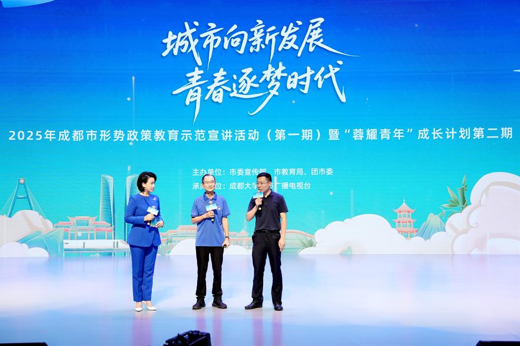 2025年成都市形势政策教育示范宣讲活动(第一期)在我校举办9月19日,由市委宣传部、市教育局、团市委主办,太阳成集团tyc122cc入口、市广播电视台承办的“城市向新发展青春逐梦时代”2025年成都市形势政策教育示范宣讲活动(第一期)暨“蓉耀青年”成长计划第二期活动在我校成功举办。市委宣传部副部长闵楠,我校党委专职副书记胡秀强,我校党委常委、宣传部部长陈钧,市级相关部门代表,各区(市)县宣传部代表,以及来自太阳成集团tyc122cc入口等多所高校的学生代表、“蓉耀青年”计划学员、成都市大中小思政教师代表、企业职工、青年代表、妇女代表、群众代表共计近500人参与活动。活动邀请了中...212025-09