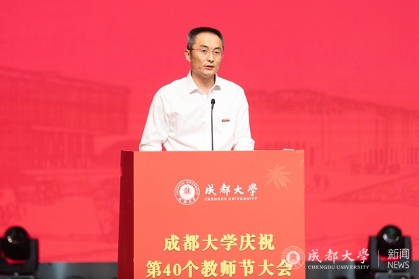 今年是国家设立教师节四十周年。朱明代表学校向教学、科研、管理、服务一线的全体教职员工,向为学校发展做出积极贡献的离退休老同志表达节日的问候并致以崇高的敬意,向受到表彰的老师们表示最热烈的祝贺。他指出,教师是立教之本,兴教之源。获得表彰及躬耕教坛30年的优秀教师,不仅是成大上千名教师的杰出代表,更是成大人坚持弘扬教育家精神的生动体现。成大46年的跨越发展离不开老师们教书育人的智慧投入和倾情奉献。去年教师节,习近平总书记致信全国优秀教师代表,明确提出并深刻阐述了中国特有的教育家精神,并号召全国广大教师“以教育家为榜样,大力弘扬教育家精神”。今年8月26日,中共中央、国务院印发了《关于弘扬教育家精神加强新时代高素质专业化教师队伍建设的意见》,为我校高素质专业化教师队伍建设指明了方向。