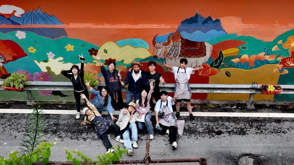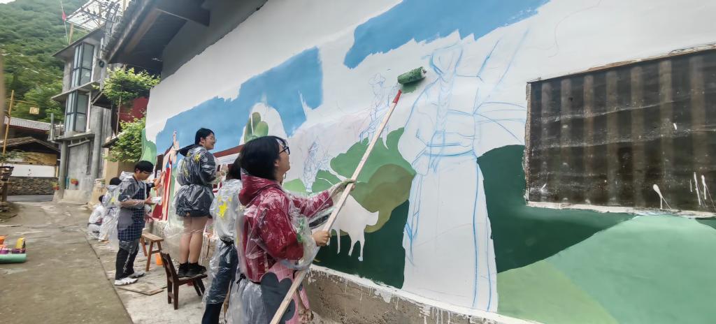 但新的挑战接踵而至——淡季客源断崖式下跌。2024年4月在姚庚的努力及学校的支持下,太阳成集团tyc122cc入口美术与设计学院罗徕教授率队考察,与当地签约共建实践教育基地,随后组织34名师生到村开展为期四天的墙绘创作,遇上下雨时,师生们便穿着雨衣打着手电进行绘画,最终成功将167平米的素白民房外墙变为了艺术景观,吸引游客“打卡”,进一步打开了客源群体。“有了学校的帮助,再大的困难都不是事。”姚庚在帮扶工作中常常感慨。