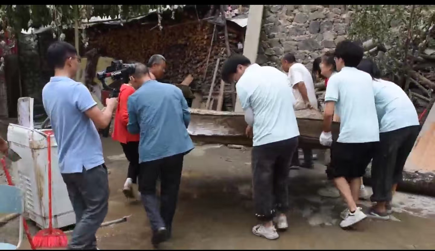 尽管姚庚所在的村庄由于海拔较高,并未受到泥石流的直接波及,但他依旧毫不犹豫投身抢险清淤工作。4个半天的轮班艰苦劳作下,他的鞋子磨破了,手上起了泡。正在双河村开展暑期社会实践的建筑与土木工程学院的同学在郭嘉昒老师的带领下,步行五里路加入清淤抢险的队伍中,一起劳动至天黑。后来,村第一书记郭树明也特意来到双河村向他们致谢。