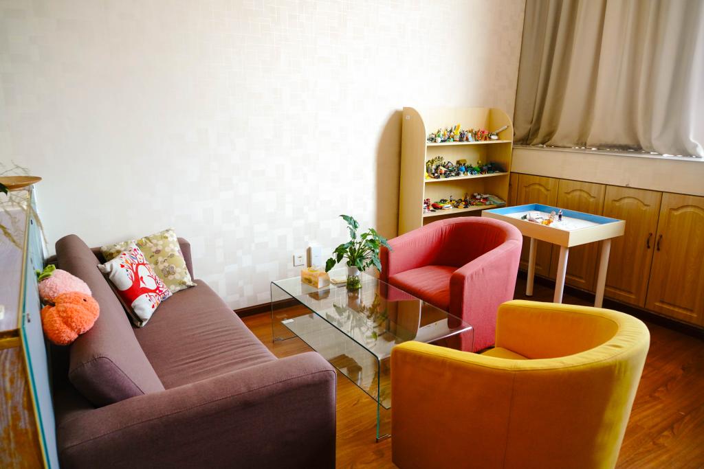 走进咨询室,映入眼帘的是五层置物柜中丰富多样的沙具:婴儿、老虎、树木、汽车、房屋……这些沙具与一个尺寸为57×72×7厘米、内侧涂蓝的标准沙盘共同构成了沙盘游戏疗法的“阵地”。