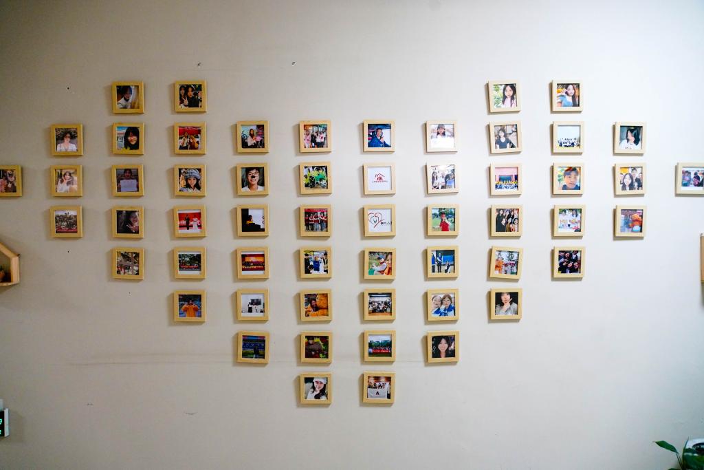 走廊里,爱心笑脸墙和房屋形状的挂壁展台让这里充满有“家”的温馨感。