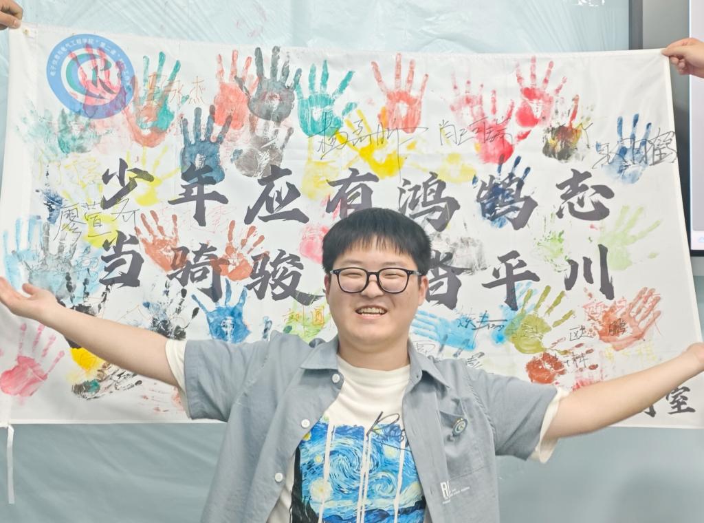 “交叉创新深入探索,志存高远勇攀高峰”。作为学校机器人工程专业的首届学子,他将与专业携手共进,从成大出发,向高向远方。他也想对学弟学妹们说:“学习之路并非一帆风顺,汗水、泪水会流下不少,但希望你们能坚持下去,一起登上山顶,领略无限风光”。