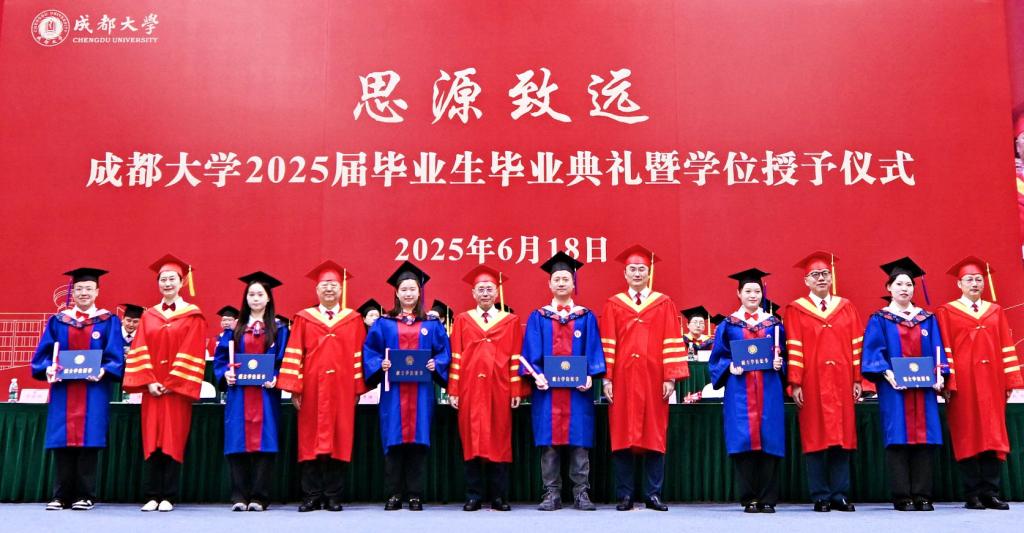 党委书记刘强为2025届四川省优秀大学毕业生代表颁发荣誉证书。党委副书记、校长朱明以“坚定坚强坚守坚持在坚韧中成长”寄语毕业生。