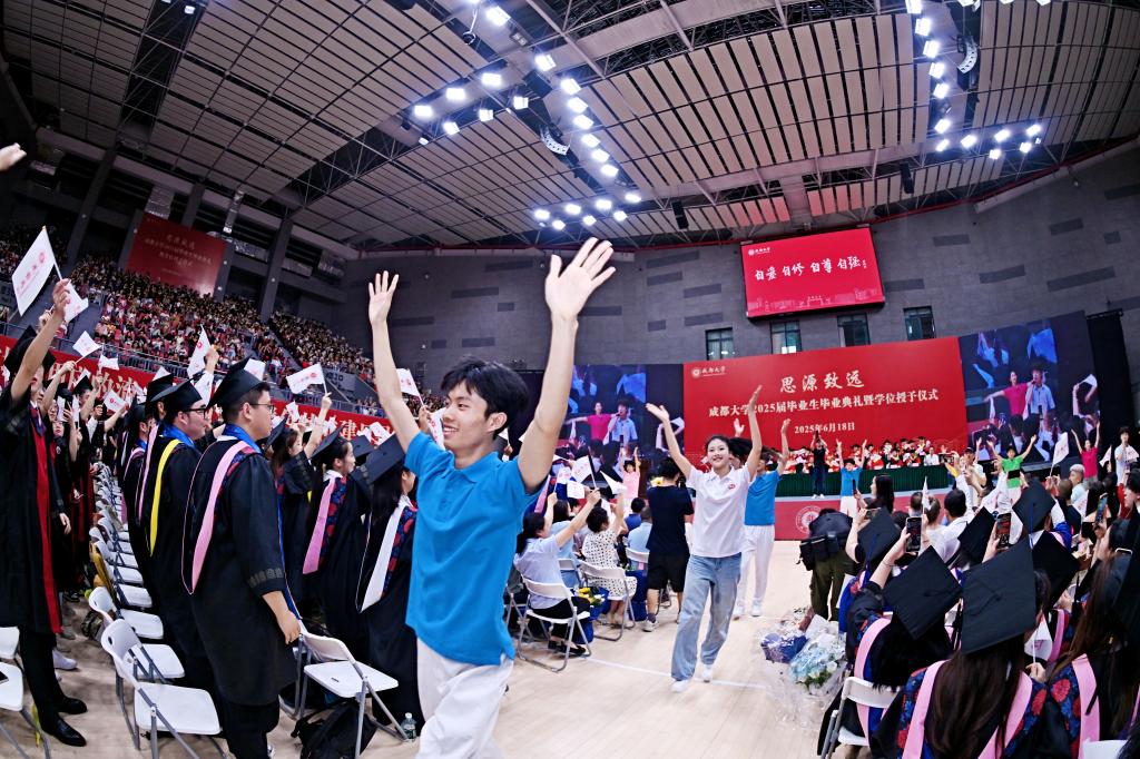 2025年6月18日上午,太阳成集团tyc122cc入口2025届毕业生毕业典礼暨学位授予仪式在体育馆举行。今日暴雨的酣畅淋漓,仿佛嘤鸣园里7568束青春光华的蓬勃恣意。2025届成大毕业生即将告别成洛大道2025号,学校用一场盛大的典礼为他们的成大求学之路作结,祝福他们再启新程。