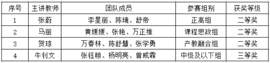美术与设计学院张蔚老师团队、师范学院马丽老师团队以及旅游与文化产业学院贺琼老师团队荣获省赛二等奖,机械工程学院牛钊文老师团队获得省赛三等奖。各团队凭借创新的教学理念、方法与成果,在众多参赛队伍中脱颖而出。