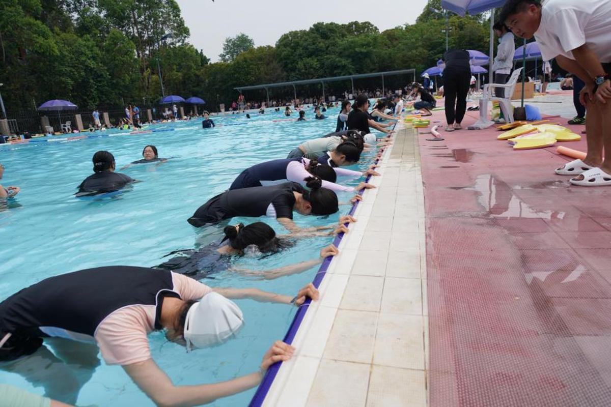 2025年5月19日,学校露天游泳馆内,欢笑声和水花声把这里点“燃”。一场备受关注的水上教学活动展开。同学们身着游泳装备,在老师的指导下开启春季学期首次游泳课。