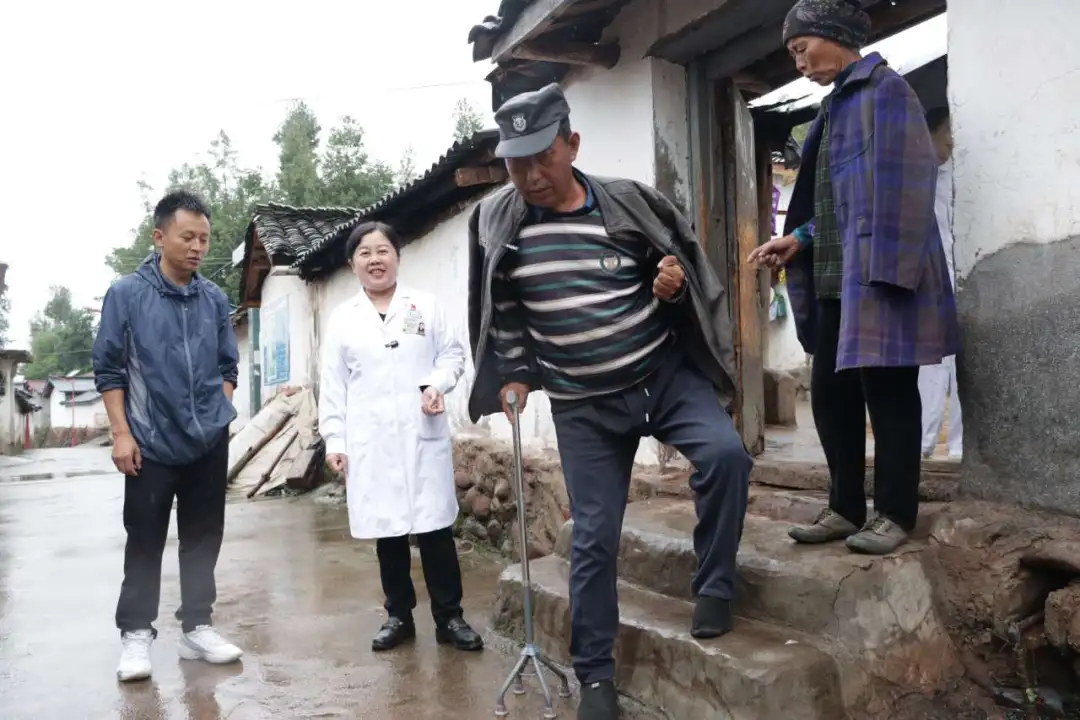 每年入户回访也是熊猫健康列车的重要工作。健康管理中心党支部书记、主任曾红莲早已是尼波镇的“活地图”,去各村民家的路线,她都十分熟络。尽管天空下着小雨,沙果大叔和他的爱人老早就站在门口等候医护团队,曾红莲见到沙果大叔分外熟悉,“今年感觉怎么样?”“药在按时吃吗?”,精神矍铄的沙果大叔说到:“我每天都要来回走,每天都要锻炼,感觉好多了,有信心多了”。巡诊团队带着沙果大叔赶往熊猫健康列车进行每年例行的健康体检。此外,专家团队还前往越西车站与尼波车站巡诊。