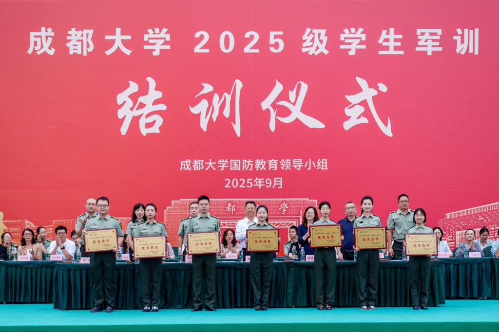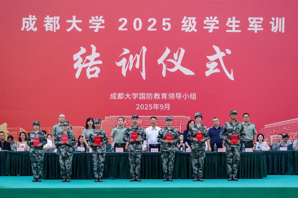 胡秀强向承训的龙泉驿区人民武装部指导教官、全体军训教官、带训教师和工作人员致以衷心感谢,祝贺受表彰的集体、个人及圆满完成训练任务的2025级全体同学。他强调,全民国防教育对巩固和提高国家安全意识、凝聚全民爱国拥军强大力量、筑牢国家生存发展的安全基石具有极其重要的意义。军训,是对同学们意志、体魄、纪律和团队精神的一次全面锤炼和洗礼。希望同学们永远铭记“令行禁止”的规则意识、 “敢打必胜”的斗争精神、“团结制胜”的协作理念,以军训为新的开端,把在军训中展现出的优良作风延续下去,以更加饱满的热情、更加昂扬的斗志、更加坚实的步伐,开启大学生活的新篇章,书写无愧于时代、无愧于青春的绚丽人生!