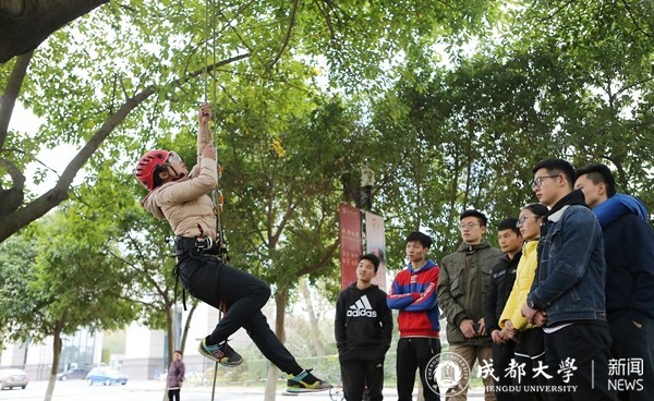 体育学院又一特色课程“打卡”上线,2016级休闲体育专业专选班新开设的“攀树课”被人民日报微信、成都商报、成都全搜索等媒体报道。授课教师李中华介绍,“攀树课”不是爬树,而是需借助专业装备完成在树上的上升、下移、旋转、飞跃等动作,具有户外、自然、高空的特性,形式和攀岩运动较为相近。网友纷纷留言,“毕竟要上树收熊猫!”“又是别人家的大学”!