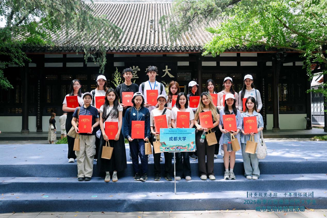 5月24日,由成都市政协港澳台侨外事委主办的2025春季在蓉港澳台侨大学生城市互动体验营活动在成都杜甫草堂博物馆举行。我校16名师生与四川大学、电子科技大学等在蓉7所高校近百名港澳台侨大学生,共同参与此次活动。