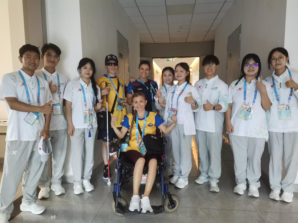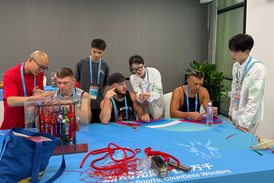文化体验活动志愿者刘滨豪:“文化的传播从不是空泛的口号,就藏在这一根绳的缠绕里——当指尖的温度传递到绳结上,当传统纹样被赋予新的故事,那些流淌在血脉里的文化基因,就以这样具体又温暖的方式,悄悄扎了根、发了芽”。来自汉语桥志愿者陈怡:“在中国照相馆里,运动员们可以身着中国人传统服饰拍照,他们非常喜欢我们的熊猫宝贝和年兽;很多运动员会主动要求和我们志愿者一起拍照合影,那是我觉得是最有成就感的时刻”。竞赛服务志愿者邓子怡:“在岗位老师的指导和同学的帮助下,我从简单招呼到场地布置、核对会议进程,语言文化方面让我变得越来越熟练和自信。每次听到外国运动员那句‘ThankYou’,让我成就感十足并无比暖心。这段宝贵的世运会志愿者经历让我亲历赛事组织的严谨,也锻炼了抗压、协作与跨文化交流能力,激励我直面未来挑战,奋力成长。”