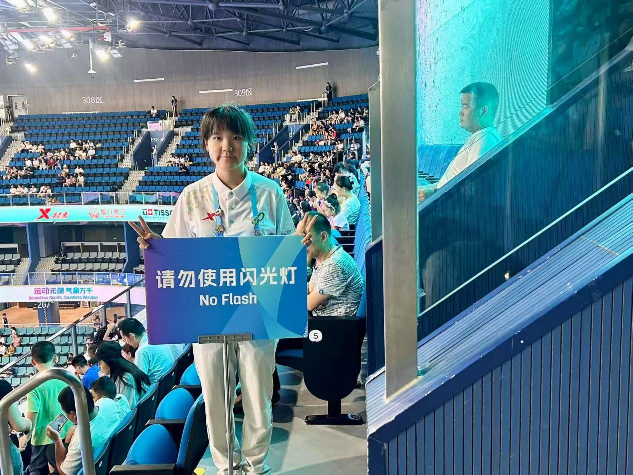 观众服务助理岗志愿者张潇丹激动地分享道:“这段经历不仅提升了我的沟通和应变能力,更让我对志愿服务有了更深的理解,它是传递温暖、促进交流的桥梁,我无比自豪自己能成为其中一员。”另一名观众服务助理岗志愿者廖珂艺同学则表示这段经历让她深刻领悟到,专业服务与真诚沟通是连接彼此、传递温暖的桥梁,在服务中奉献,在奉献中成长,能够为这场体育盛会贡献力量她深感自豪。