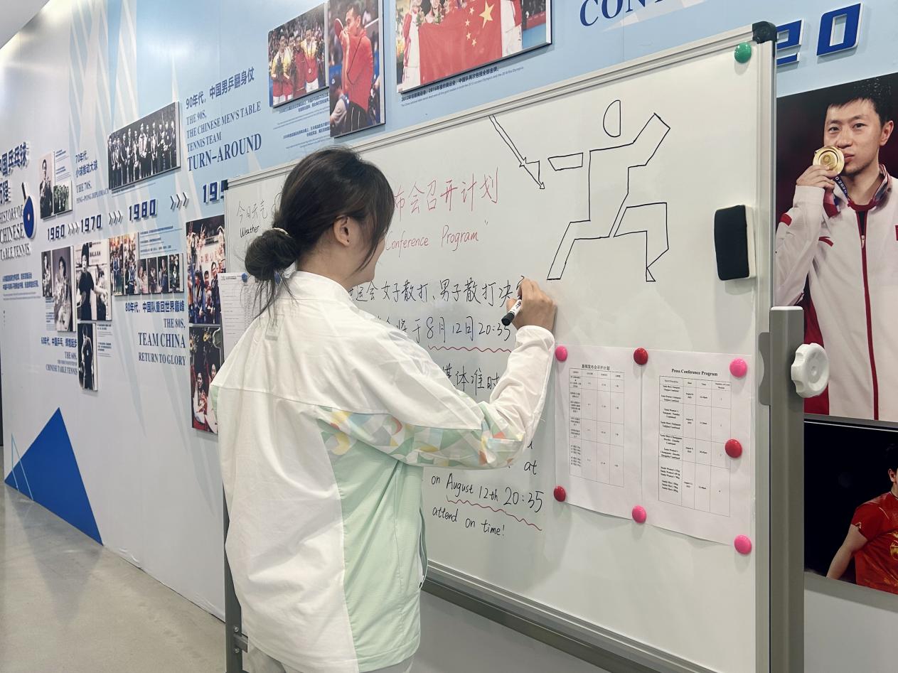 在场馆志愿者之家中,志愿者助理们凭借出色的组织协调能力,协调志愿者团队,保障各环节紧密衔接高效运转。