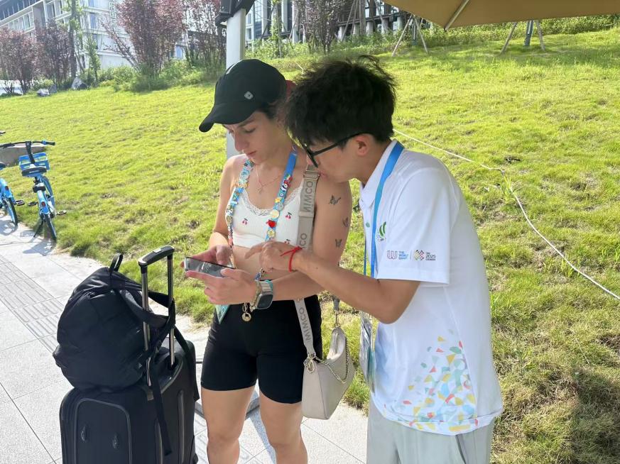 作为世运村A区交通联络岗位的志愿者,我就像村口的“活地图”。每天,都会遇到来自不同国家且参加不同项目的运动员前来问路,他们眼中虽带着初来乍到的迷茫,却也藏着对赛事的期待。我认真的向他们讲解从主赛场到训练馆的最短通道,以及从媒体中心到运动员村的换乘站点。在与各位运动员交流的过程中,我真切地感受到了不同文化之间的碰撞与交融。我愈发明白,交通联络工作绝不仅仅是简单的指路,更是一个传递赛事温度的过程。希望这份细致入微的指引,能成为他们世运记忆中便捷且温暖的一笔。