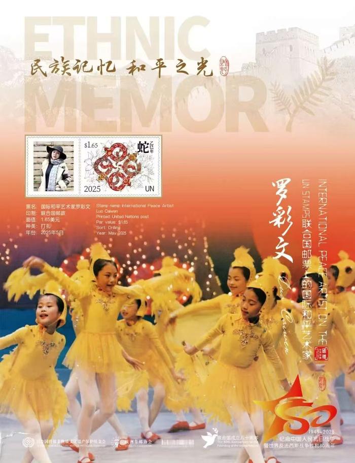 联合国邮政、德国邮政、法国邮政、荷兰邮政在全球公开发行一套以纪念中国人民抗日战争暨世界反法西斯战争胜利80周年“民族记忆和平之光——国际和平艺术家”为主题的邮票与珍藏册,罗彩文女士个人形象走上欧洲多国邮票,在欧洲公开发行。以邮为媒,方寸之间让世界各地的人们感受到爱与和平的力量,并为世界和平发展注入新能量。