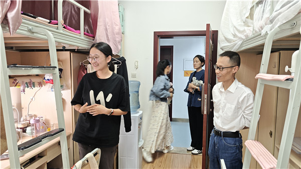 国庆、中秋双节将至,为进一步做好校园安全稳定工作,筑牢校园安全防线,切实做好国庆中秋假期学生健康与安全有关工作,9月30日,党委常委、副校长彭晓琳带队深入橙园学生社区开展走访慰问和校园安全检查工作,学院院长、党委(总支)书记、副书记和辅导员(班主任)走访宿舍慰问学生。党委学工部、党委保卫部有关人员陪同。