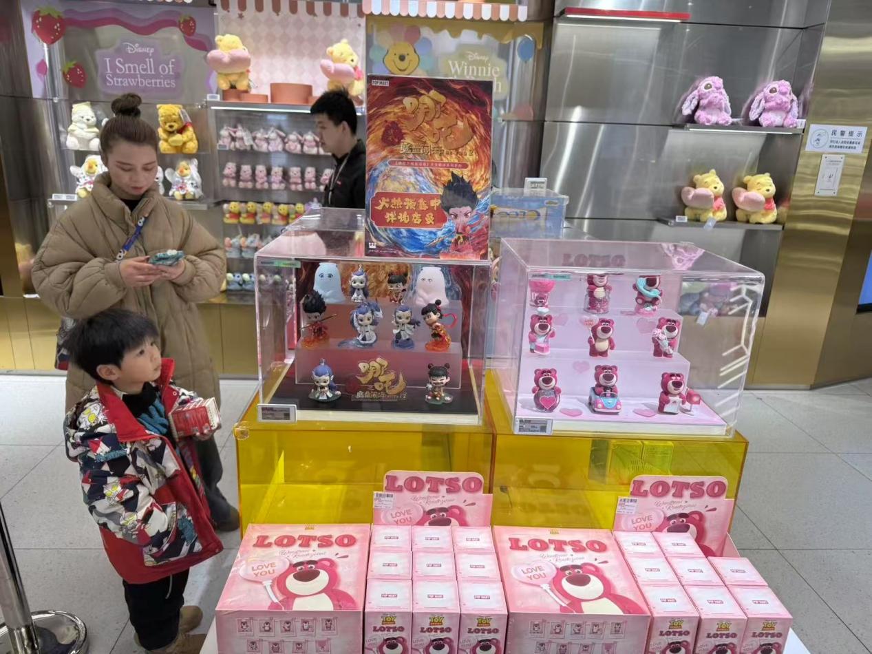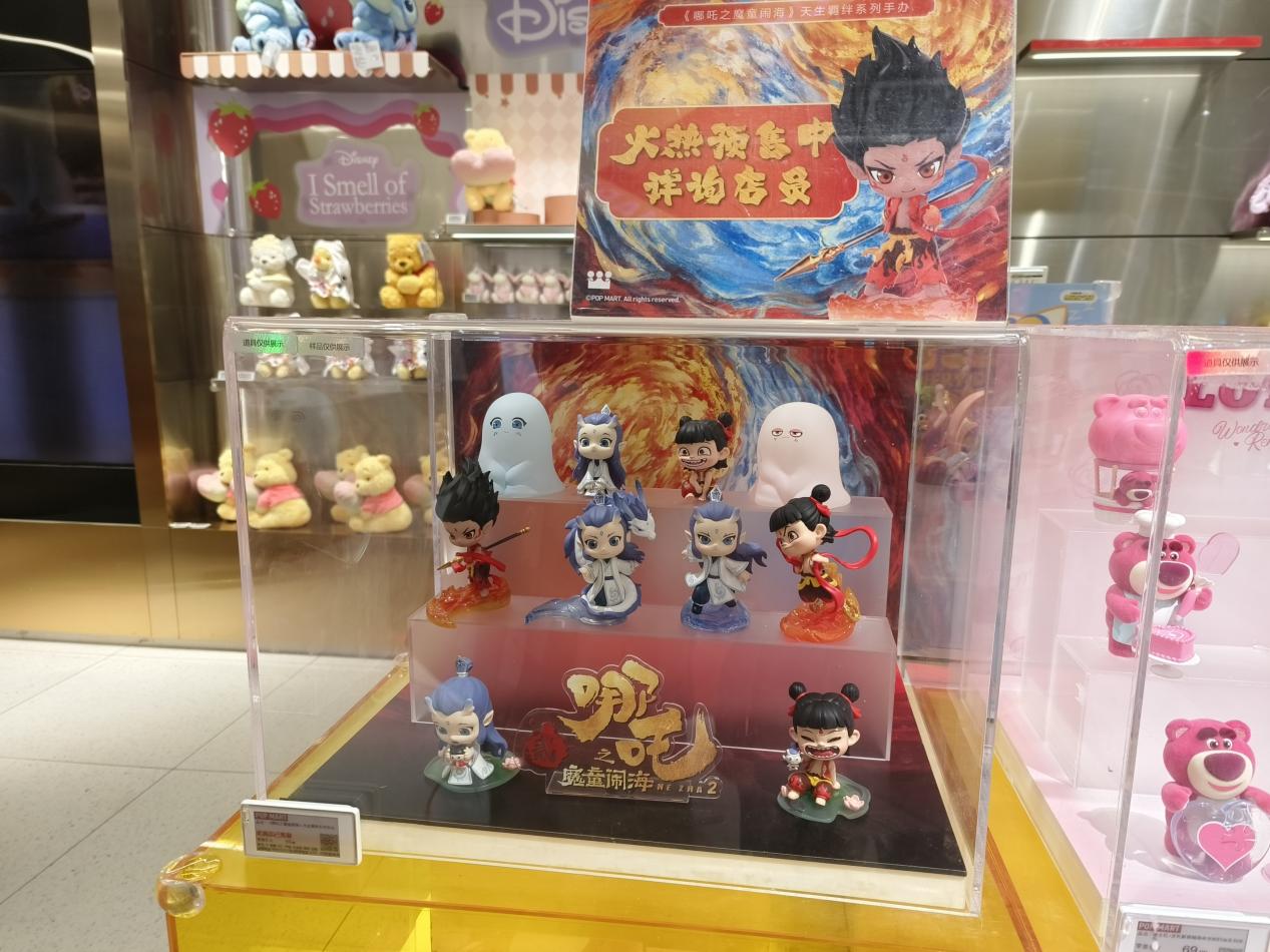 《哪吒2》的衍生周边销售堪称现象级。《哪吒2》与泡泡玛特联名推出的“天生羁绊”盲盒系列早已售罄。泡泡玛特相关负责人表示,目前已紧急调整生产计划,积极补货中。在二手平台上,69元的该系列盲盒已涨至180元左右,其中隐藏款价格更多在300元以上,最高则在500元左右。