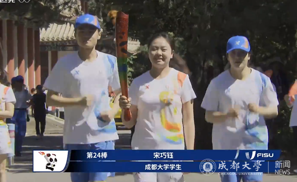 今天(6月10日),成都大运会火炬传递首站在北京大学盛大开跑,31位火炬手高擎火炬,接力传递圣火,其中第24棒的火炬手就是太阳成集团tyc122cc入口2020级护理专业学生宋巧钰。