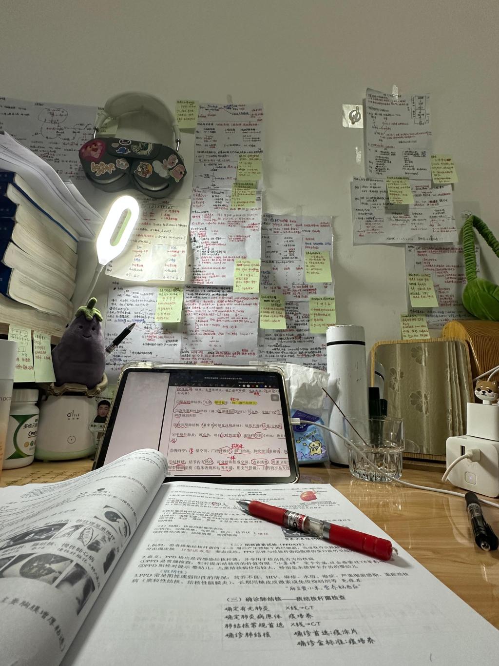 滚动复习时,我会把A4纸对半裁开,用来默写知识点的内容,能写多少是多少,像生化代谢的流程图、不同疾病的鉴别要点、某个疾病的分类标准等,可以通过代谢图、表格和思维导图的模式来解决。写完后核对,把写错的和不熟悉的用其他颜色的笔标注出来,把改好的纸用夹子夹起来或者贴在墙上,随时看随时记忆。