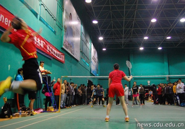 图/何国庆首届“伟杰杯”羽毛球全国精英赛4月4日在成都举行扣球