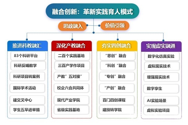 学校实践教学强化思政融入和价值引领,推进科教融汇、深化产教融合、夯实四创融合、实现虚实融通,全面推动实践教学模式改革融合创新。