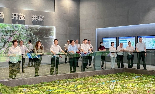 随后,学校党委领导班子一行来到天府新区规划厅,开展“重走习近平总书记成都足迹”专题研学。大家首先重温了习近平总书记2018年2月11日视察天府新区规划厅时的重要指示,并通过详细聆听讲解和认真观看宣传展板、沙盘模型、宣传视频等形式,全面了解了天府新区的发展理念、生态格局、城镇空间结构、国内外交通体系、功能定位等,切实感受到了天府新区的美好规划蓝图正逐步转变为高质量发展的生动实践。