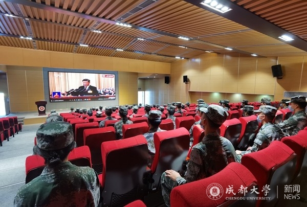 随着庄严的国歌奏响,现场观看人员全体起立,高唱中华人民共和国国歌。在行政楼501会议室,学校全体党委常委、党委职能部门负责人聚精会神收看开幕会直播。学校处级干部,民主党派、统战团体负责人,职能部门、直属业务部门科级干部,各学院党政办主任,辅导员,学生骨干代表踊跃收听收看开幕会直播的热烈场面,认真聆听习近平总书记的报告,认真记录报告内容,近两小时的现场直播,大家始终全神贯注,边聆听边思考,热烈的掌声阵阵响起。