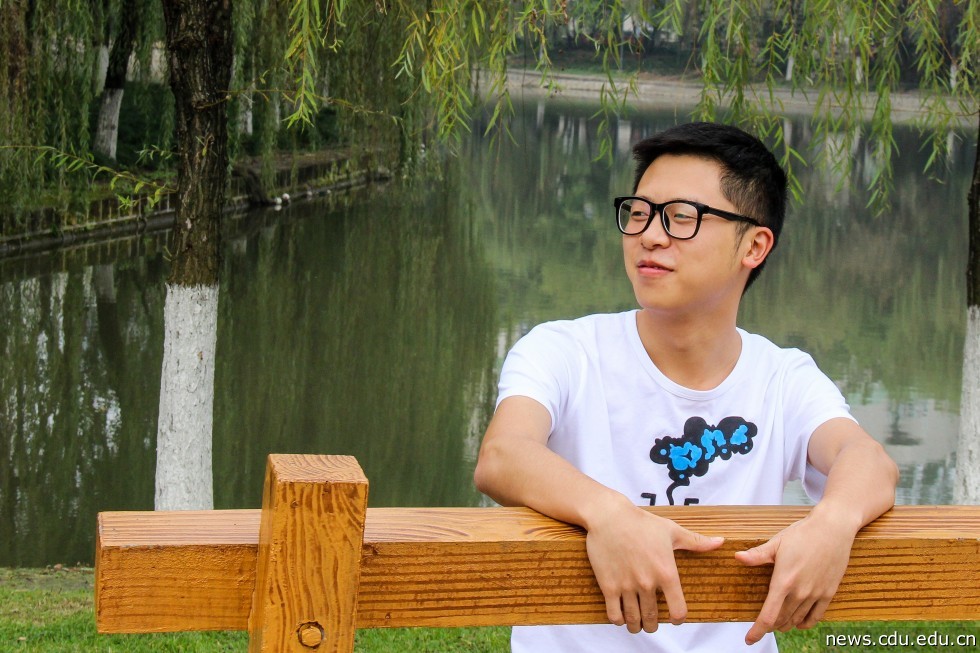 他似水,有一颗澄净明亮的心。大学期间,他积极参与志愿者活动。“我有时间有精力,为什么不去帮助别人呢?”赠人玫瑰,手有余香,在帮助他人的过程中,代田洋也收获了很多。他曾在“食药安全助力芦山,低碳环保共建雅安”的志愿活动中遇到雅安地震时第一批为灾区免费提供出租车服务自救的司机,分享他们的感动与震撼。也曾在养老院里遇到尽管自己名字都已记不得,但却始终记得自己老伴名字的老爷爷。平凡的人的平凡生活带给他的震撼和感动总是无以复加。“不要去相信什么是真的,去相信你愿意相信的。”就是这些志愿活动中数不清的细节,让他坚信平凡和感动的力量,并且愿意为之奋斗。