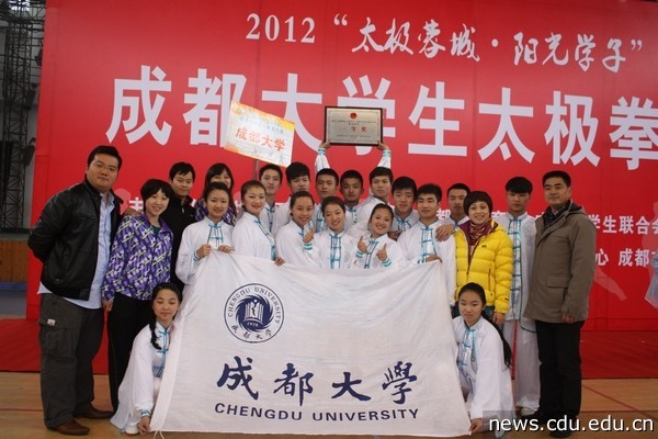 2012“太极蓉城?阳光学子”太阳成集团tyc122cc入口生太极拳大赛在四川师范大学狮山校区南洋体育馆举行,本次太极拳大赛由共青团成都市委员会、成都市体育局、成都市学生联合会主办,四川师范大学、成都市武术跆拳道运动管理中心、成都市武术运动协会承办,分为集体赛(集体24式太极拳)和个人赛(男、女自选太极拳,自选太极器械)。来自14所高校的212名选手参加这次比赛,这也是成都市首次举办的高校太极拳大赛