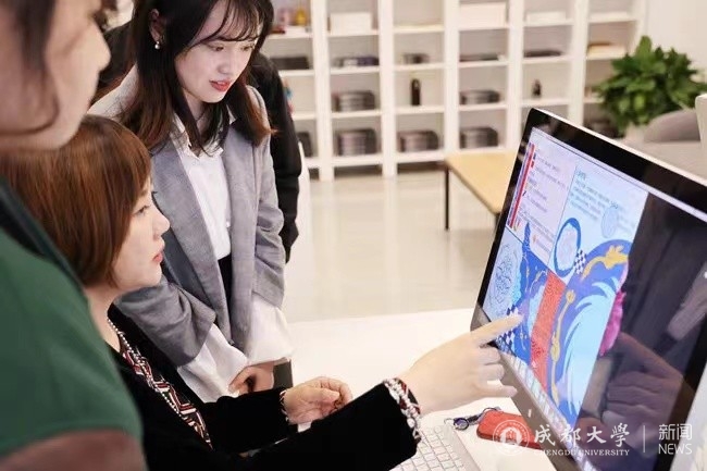 2023年8月,学生艺术实践工作坊《“大美蜀锦”非遗传承创新工作坊》在四川省第十届大学生艺术展演活动中获一等奖。备展时,马丽娃老师正在泰国学习,听闻展演不符合场地要求,便在线上进行远程指导,两方合力克难,连夜完成了修改。“老师同学们都特别给力,才拿到了这么好的成绩。”