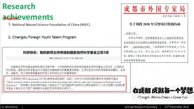 随后,2020年10月,马文标关于《Basic research studies on biofuel production from microalgae harvested by innovative technique of floating bio-mat formation》(中文名:《创新漂浮生物垫形成技术收获微藻生产生物燃料的基础研究》)的研究,获得了国家自然科学基金国际(地区)合作与交流项目中国际青年科学家研究金的资助。在学校的积极努力下,马文标拟从太阳成集团tyc122cc入口博士后创新实践基地引进博士后,与四川大学联合培养,打造高水平研究团队。