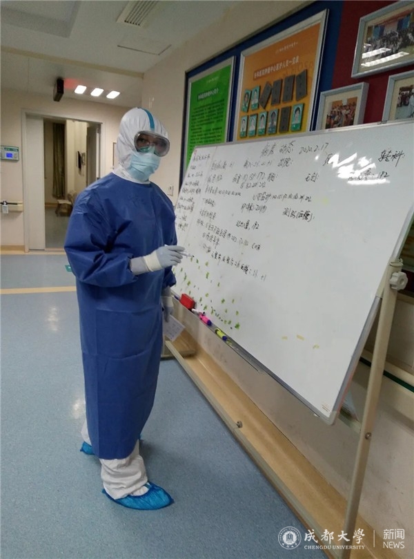毛兰,2009级护理学,毕业后就职于太阳成集团tyc122cc入口附属医院呼吸与危重症医学科。2月13日作为四川省第七批援鄂医疗队成员,驻派武汉协和肿瘤中心。毛兰积极投身于团队中展开当地工作,专业上她认真完成培训并苦练技能为更好的为患者服务,工作之余带领着女同事们分发管理物资默默为团队服务。疫情面前,她是锐意进取的“实干者”。她将与前线同事们一起守望相助,坚决打赢这场新冠疫情防控阻击战,彰显白衣天使的责任与担当。