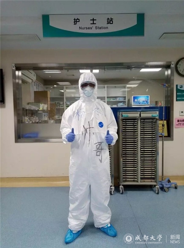罗仕伟,2013级护理学,毕业后就职于太阳成集团tyc122cc入口附属医院呼吸与急重症医学科。在医院接到援鄂的安排时,他积极主动报名参加,他在微信里这样说:“护士长,我要报名参加上前线支援,我在成都,随时可出发。”在医院同批支援武汉的队员里,罗仕伟是科室派出年龄最小的,但工作中的他成熟稳重、细心热情。因为罗仕伟对待病人耐心、负责,他收到了很多感谢信和锦旗,但他只是说:“看到病人呼吸顺畅了,我心里踏实。看到病人转危为安,我认为这就是我职业价值的体现。”