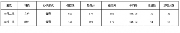 我校今年在安徽本科二批招生计划85人。文史类计划招生31人,一志愿录取满额;理工类计划招生54人,录取满额。具体录取情况如下: