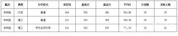我校今年在河北本科普通批招生计划76人,理工类(普通)招生计划35人,录取满额;理工类(中外)招生计划16人,录取满额;文史类招生计划25人,录取满额。具体录取情况如下: