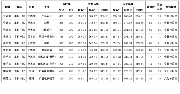 我校今年在四川艺术本科计划招生541人,其中美术类招生81人,设计类招生273人,舞蹈类52人,音乐类59,编导类76人,录取满额,具体录取情况如下: