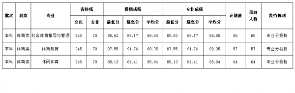 我校今年在四川体育本科普通类计划招生186人,录取满额,具体录取情况如下: