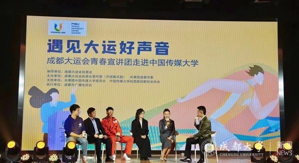 “遇见大运好声音”成都大运会宣讲团由成都大运会执委会指导,成都大运会执委会宣传部(开闭幕式部)、共青团成都市委组织,宣讲团在大运会倒计时100天的重要节点走进北京、杭州等地高校,与青年学子面对面,传递体育时代精神,吸引全球青年人共襄盛事。