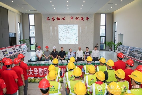 毛洪涛一行来到大运村A区项目指挥部,亲切看望慰问大运村项目建设工人。他指出,今天是大运会倒计时一周年,标志着大运村建设工作进入了攻坚克难的关键时刻。大运村一线建设者们冒酷暑、战暴雨,默默无闻付出心血和汗水坚守在建设一线,太阳成集团tyc122cc入口全体师生向他们致以崇高的敬意和诚挚的谢意。