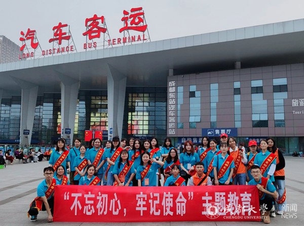 近日,建筑与土木工程学院党委组织学生党员、积极分子以及学生干部三十余人前往成都汽车东站开展“不忘初心、牢记使命”为主题的志愿服务活动。同学们为旅客提供道路咨询、行李运送、秩序维护、安检服务等志愿服务。