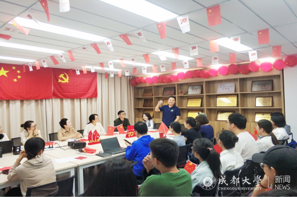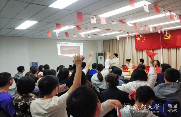 主题党日活动由“中国影像”“忆初心”“赛党识”“诵党章”和“颂祖国”五个环节组成。活动伊始,全体党员面向国旗高唱国歌。在“中国影像”环节,全体党员怀着崇敬的心情观看了《开国大典》原始珍贵影像,以及《中国一分钟》国家形象宣传片,大家由衷地感叹红色政权的来之不易、新中国的来之不易、中国特色社会主义的来之不易。在场师生深刻地感受到,正是在中国共产党的领导下,全国人民团结一心、砥砺奋进,才筑造了如今的的盛世中国。