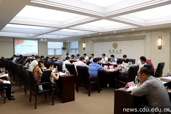 党委副书记宋辉、党委副书记、纪委书记易贤文出席会议,并就相关工作作部署。党委组织部传达了成都市《关于推进“两学一做”学习教育常态化制度化的实施意见》文件精神并通报了近期学校党建工作开展情况;党委宣传部传达了上级关于落实党委意识形态责任制工作等相关要求;党委武装部(保卫处)传达了上级有关安全稳定工作文件精神并通报了我校2017年大学生征兵工作情况。
