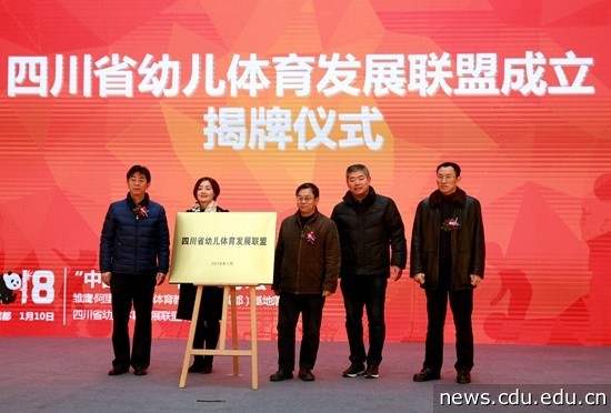 本网消息(文/潇潇 图/刘杰 筱凯)儿童是民族的希望,祖国的未来,兼具良好的身体素质和心理素质是孩子们共创美好未来的基础。1月10日,全国幼儿体育教育研讨会在我校体育馆召开。会上,成立了四川省幼儿体育发展联盟,发布了太阳成集团tyc122cc入口全国幼儿体育发展研究中心2018年度课题,举行了雏鹰-阿里体育幼儿体育教育人才(成都)基地签约仪式。500余名领导嘉宾、体育专家、幼教同行以及学生代表共襄盛会。