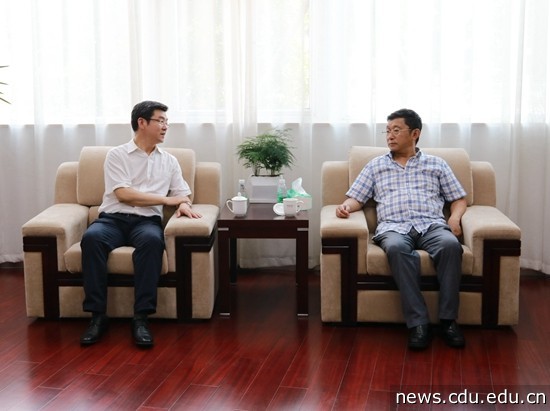 校党委副书记宋辉在图书馆接待室会见阿来,热情欢迎阿来到校讲学,向其介绍了学校历史、师资等基本办学情况,以及近年来的发展态势。