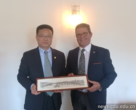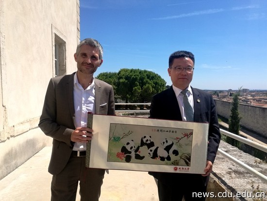 在伊望拉修市长陪同下,代表团一行访问了尼姆大学。王清远与尼姆大学校长洛克斯进行了友好会谈。双方就建立友好合作关系,开展本科双学位项目、硕士及硕博联合培养项目进行了详细商讨。会谈后,法国南部最大的报纸《南方自由报》记者对双方校领导进行了采访,随后以“尼姆大学:踏上与中国成都的合作之路”为题进行了报道。