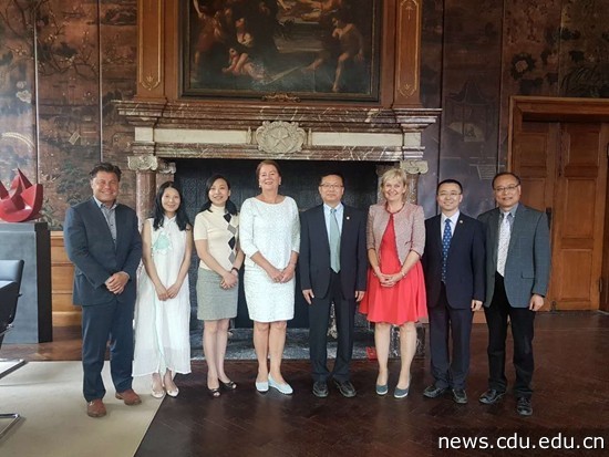 在荷兰南方应用科技大学,王清远与该校校长卡雷尔·范·罗森达尔进行会谈。作为成都市友城高校联盟的共同发起成员单位,太阳成集团tyc122cc入口与荷兰南方应用科技大学已有多年合作。双方对今后两校在管理及护理等专业上的深度合作进行了商谈,一致确定将加大两校在硕士层次的项目合作力度。代表团一行参观了该校国际商务与交流学院、酒店管理学院、健康护理学院,并分别与各学院负责人进行会谈。