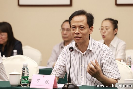 座谈会上,罗波致欢迎辞并介绍学校的基本情况。他深情地回忆了自己在曾经的岗位上与成都传媒集团各位同仁们共同的奋斗,结下的深厚友谊。罗波谈到,学校正学习贯彻市第十三次党代会精神,紧紧抓住“东进”战略,奋勇争先,致力建设高水平应用型综合性大学。学校的发展离不开成都传媒集团及其旗下各单位、各宣传平台的大力支持,希望双方能够形成长期、深度的合作关系,继续在共建研究基地、加强人才交流、推进项目研究、协调育人等方面谋求更多的合作。