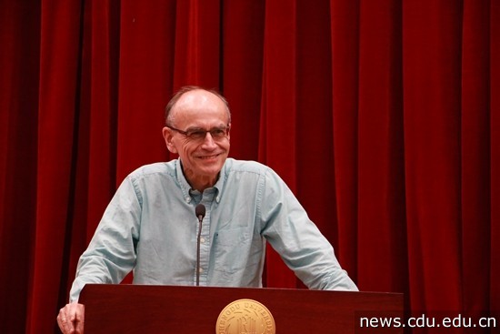 聚德霍夫教授亲和儒雅,彬彬有礼,面对演讲现场的小插曲,他也始终面带微笑,用丰富的肢体语言与师生亲密互动,让人禁不住大赞“Nice”。